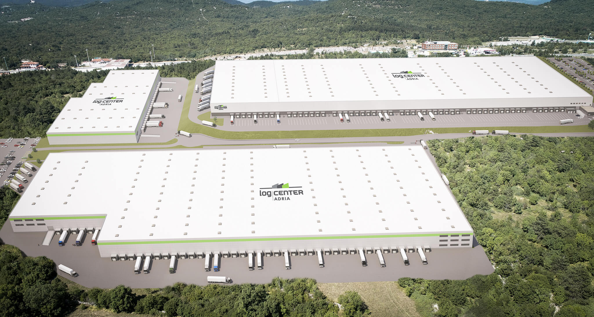LOG CENTER ADRIA in Sezana is strategically located next to the highway on the Slovenian–Italian border and in the immediate vicinity of the Port of Koper and the Port of Trieste. It is a modern, A-class industrial and logistics park. With 50,000 sq m custom-built and sold to the client, the German retailer TEDi, the park still offers land with permits for approximately 47,000 sq m of storage and production space. Its advantageous location makes the park an ideal distribution and warehousing hub for both international and domestic companies, transcontinental logistics providers, retailers, automotive suppliers, as well as e-commerce companies.